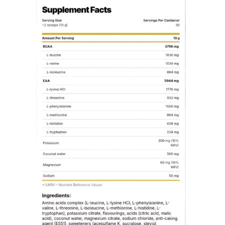 9 essential amino acids for muscle growth, recovery, and endurance.