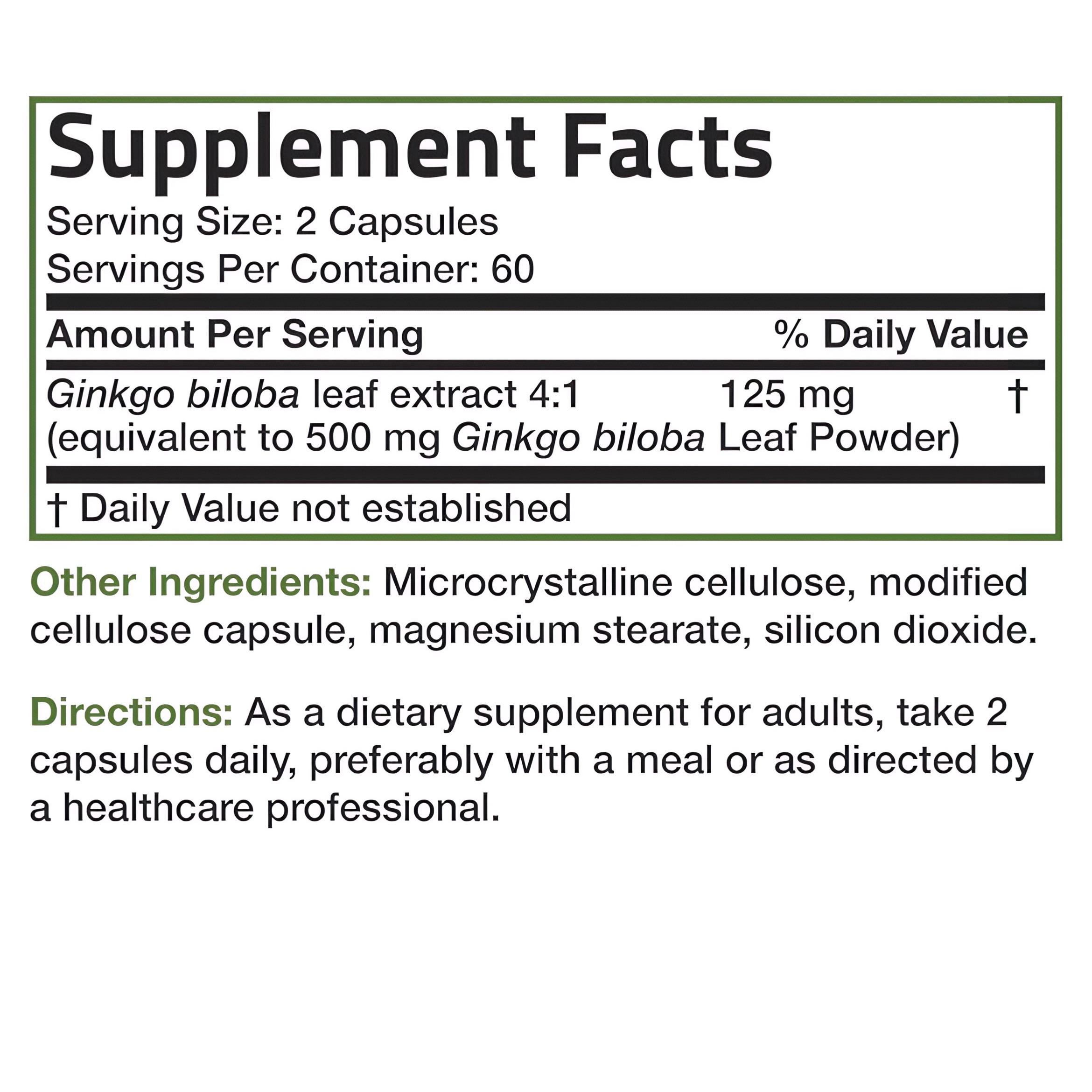 For optimal results, take 0ne (1) vegetarian capsule twice daily with meals, or as directed by your healthcare practitioner. Consistent daily use for at least 8-12 weeks is recommended to experience the full benefits, as Ginkgo Biloba’s effects are cumulative and build over time. Stay adequately hydrated by drinking plenty of water throughout the day to support optimal absorption and effectiveness.