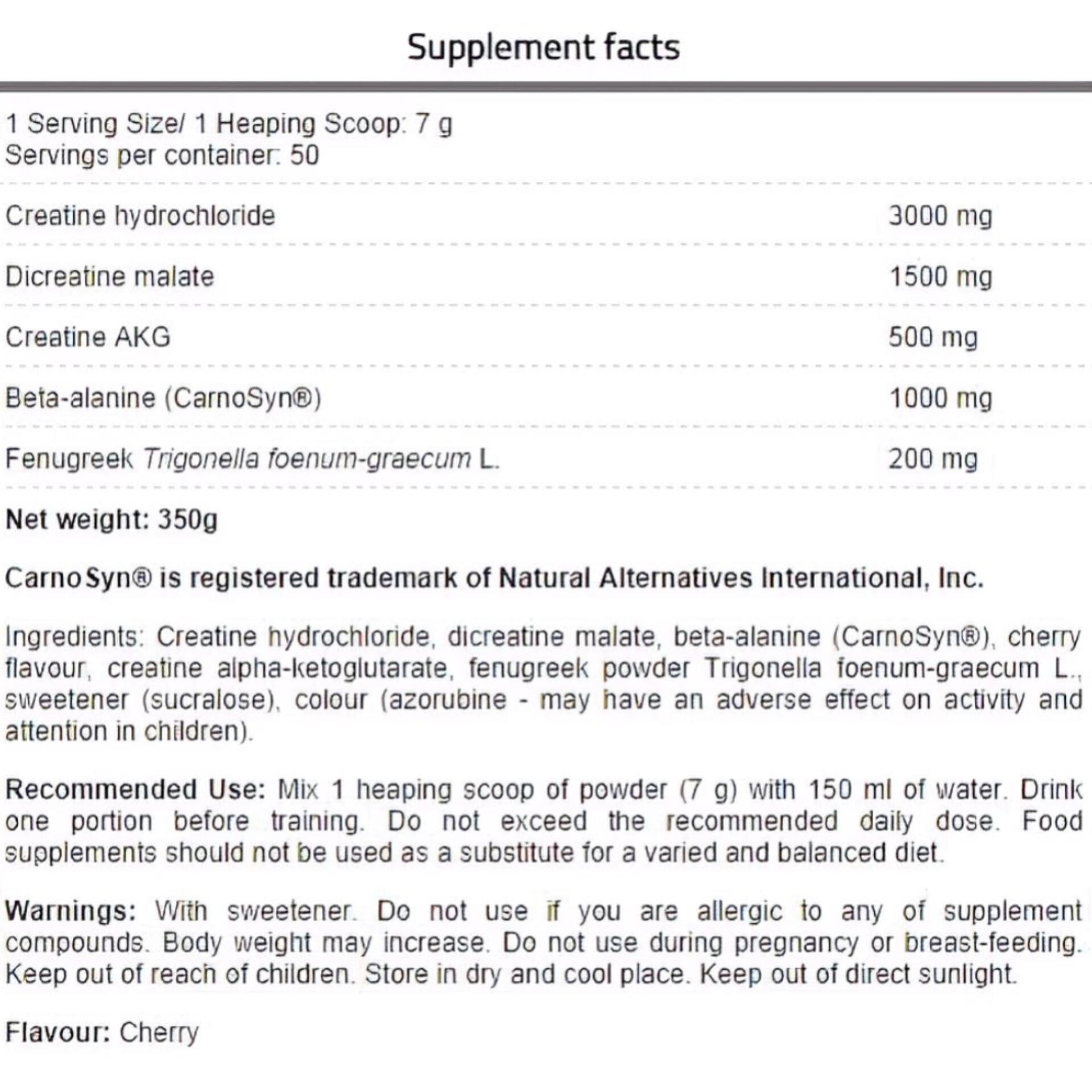 Daily Intake: Mix 1 scoop (6.8g) with 250ml of water or your favorite pre-workout drink.