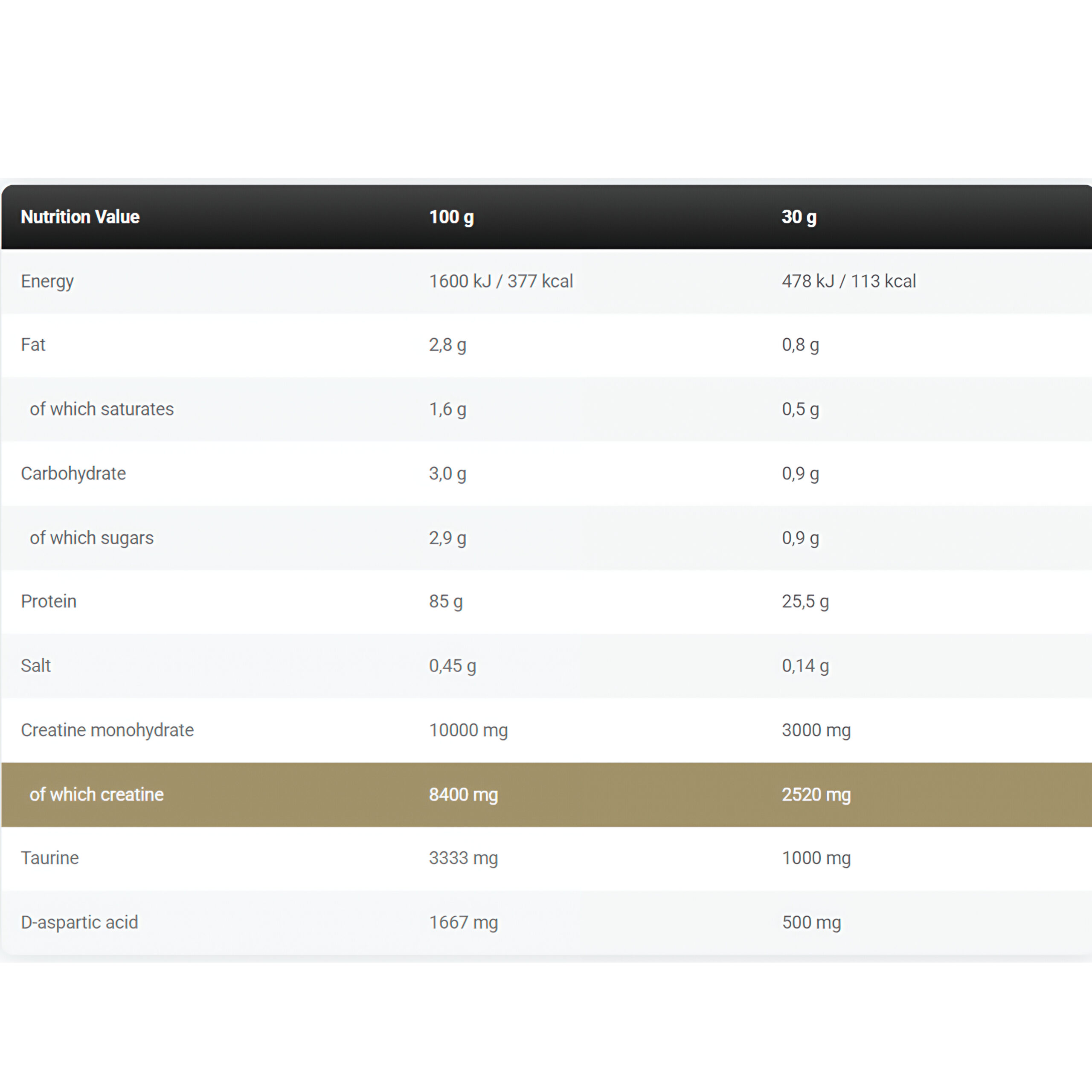 - 10 grams of ultra-pure creatine per serving