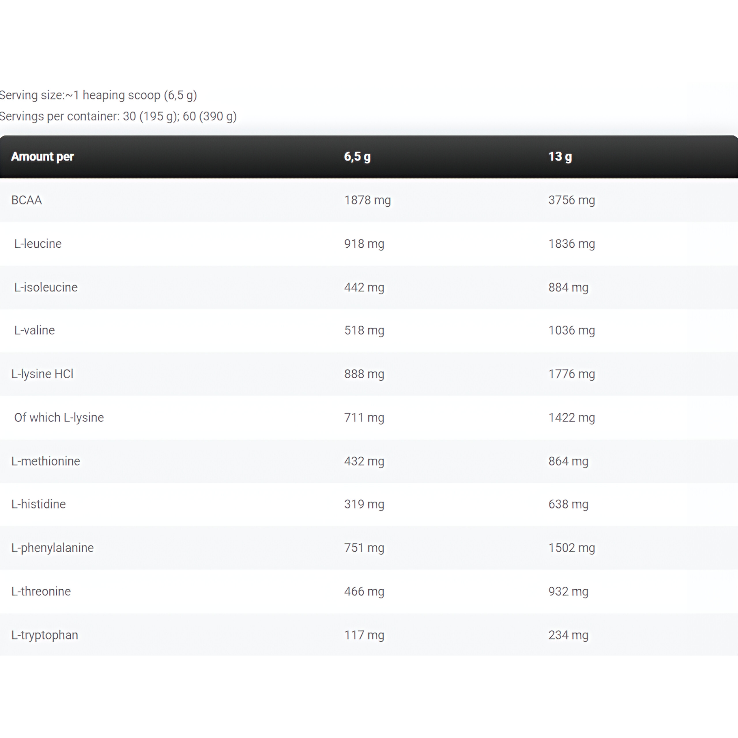 Contains 6g of Leucine, Isoleucine and Valine