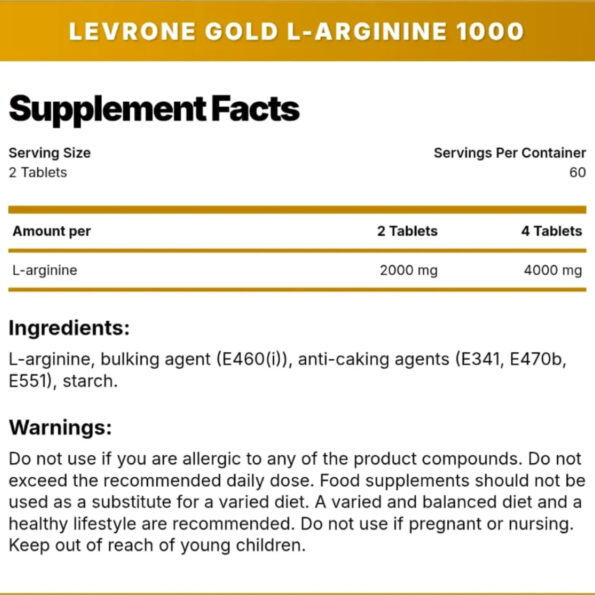 High-Potency & Purity: 1000mg of pure L-Arginine per serving (2 tablets), with no unnecessary fillers.