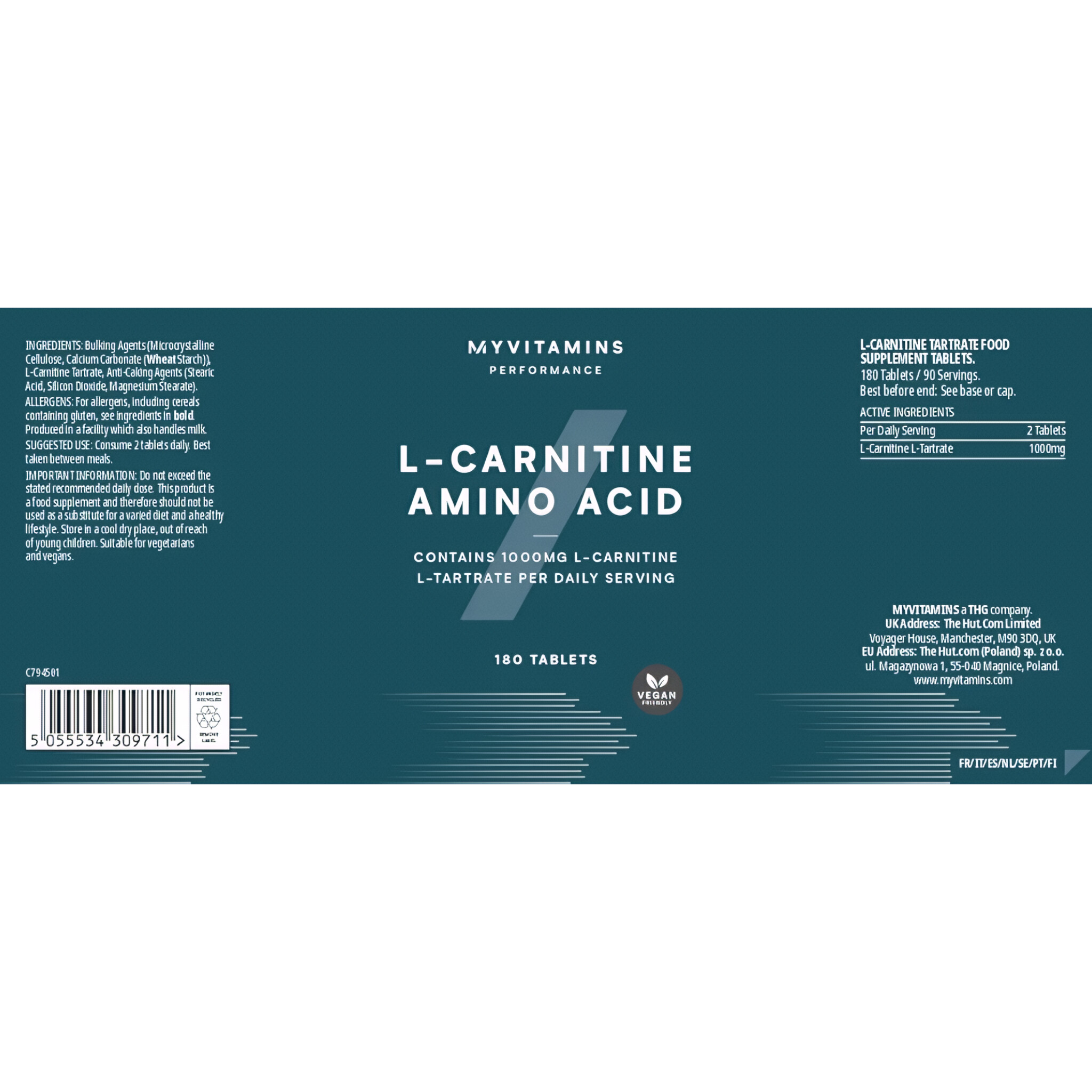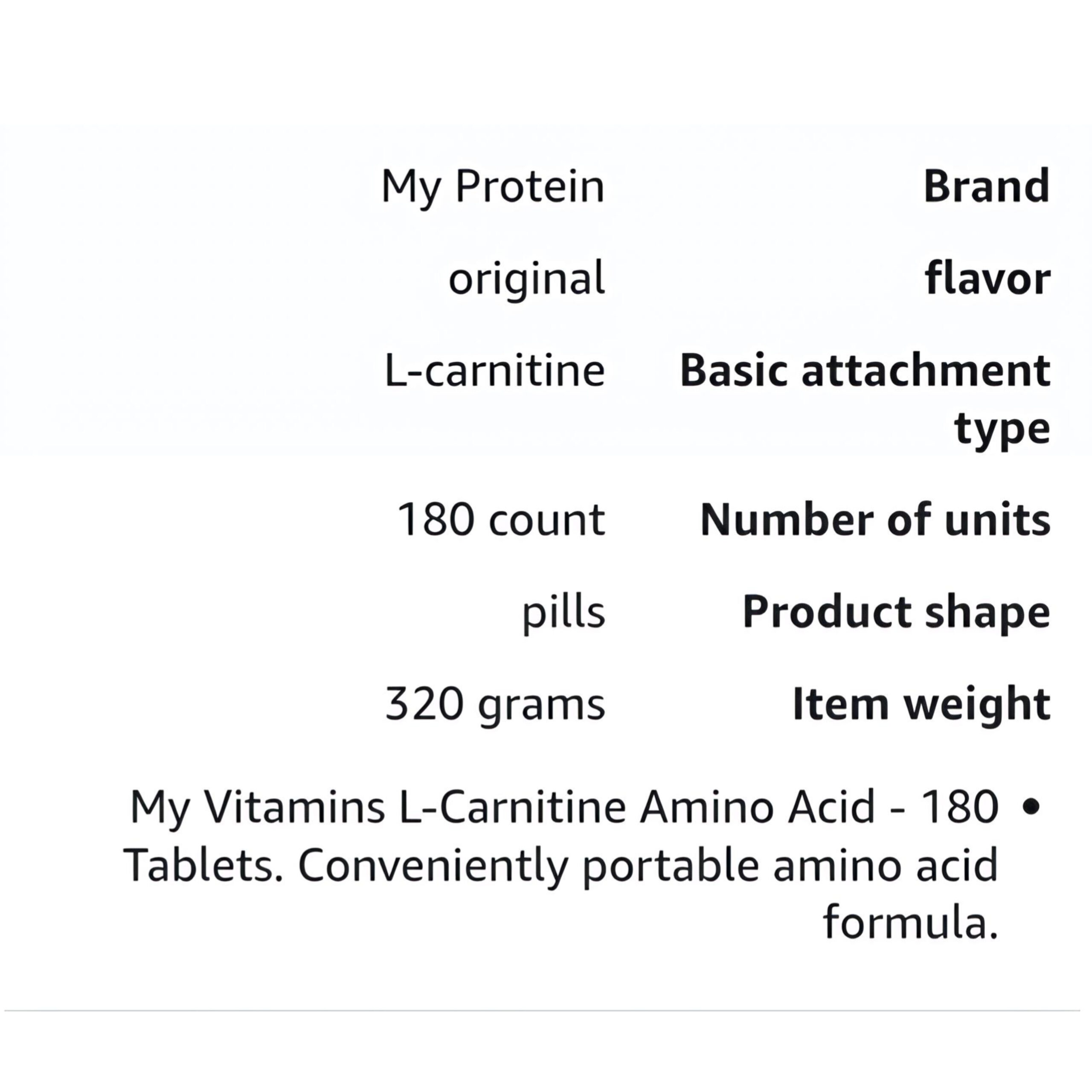 My Vitamins L-Carnitine Amino Acid 1000mg 180 Tablets