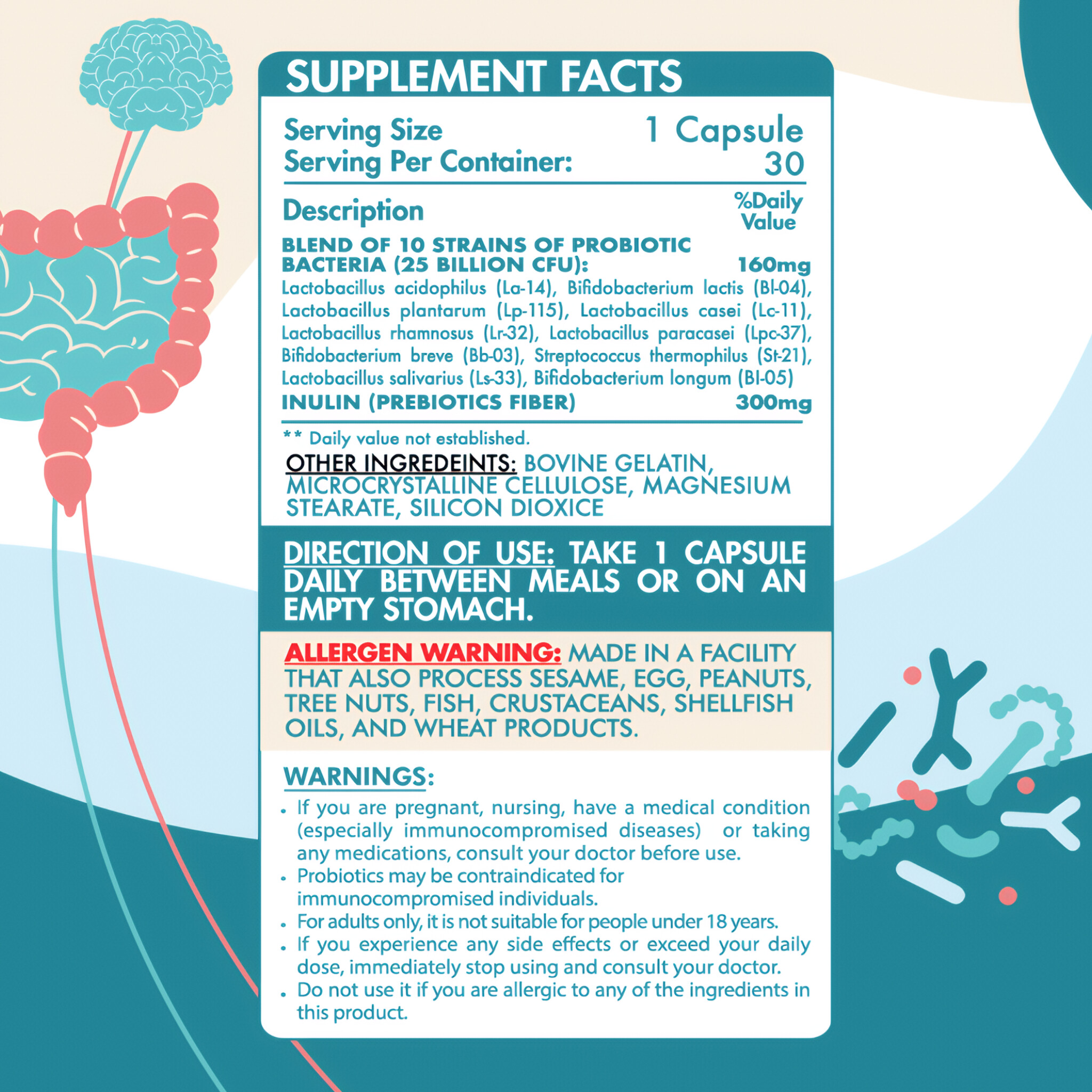 Survivability & Efficacy: Features robust strains like Lactobacillus and Bifidobacterium species with natural acid-resistance, ensuring they reach your gut alive.
