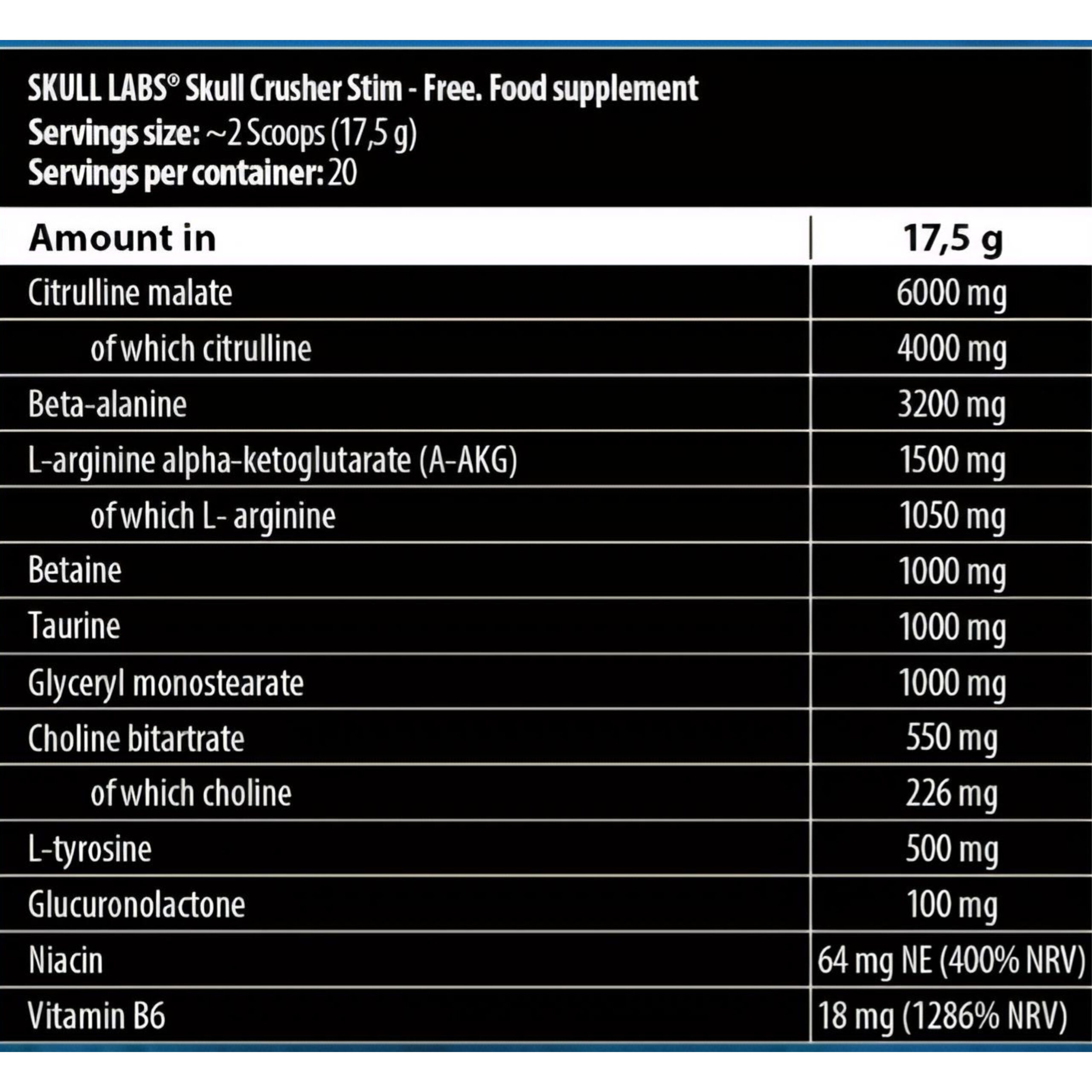 Skull Labs Crusher STIM-FREE 20 Servings