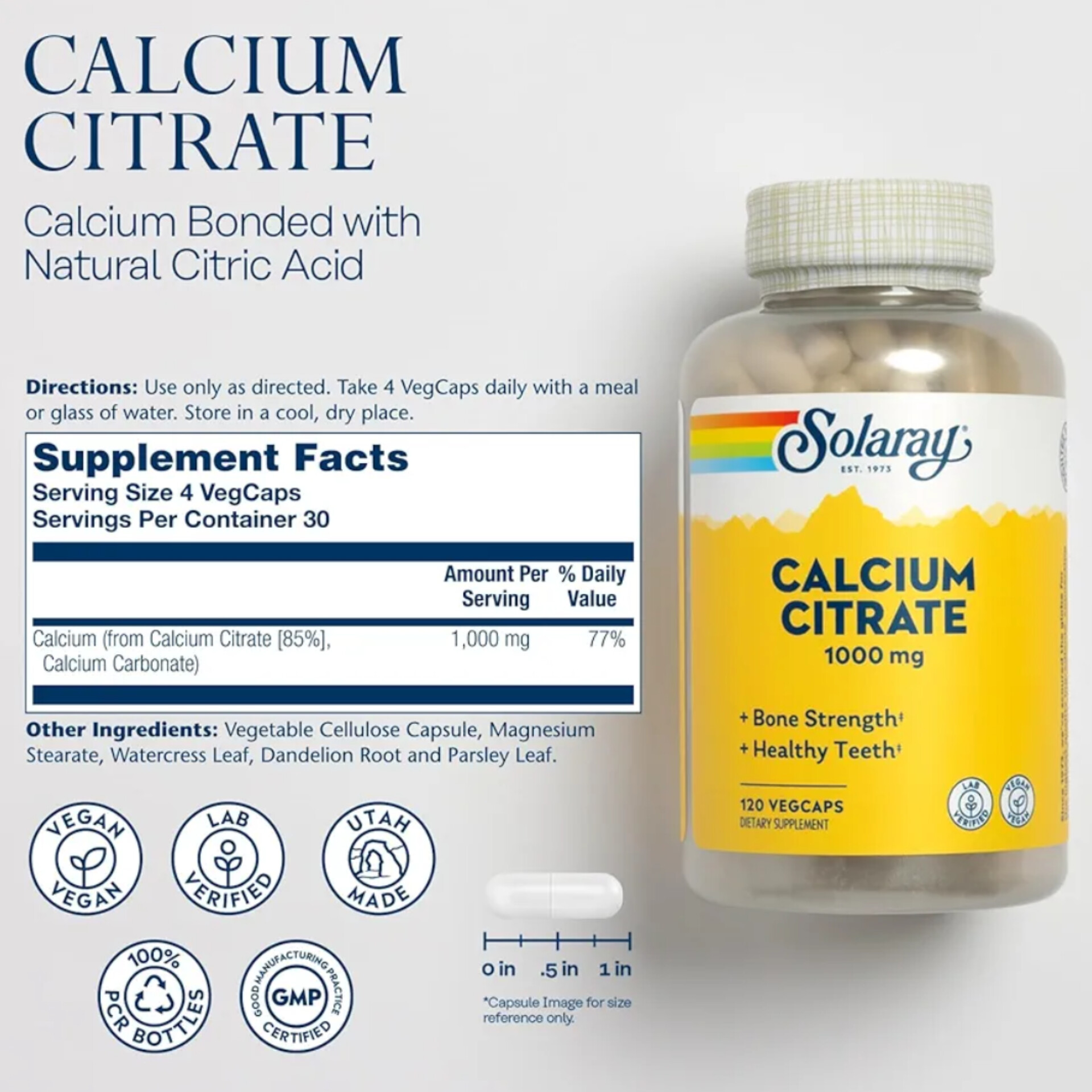 Solaray Calcium Citrate 1000mg 120 Capsules